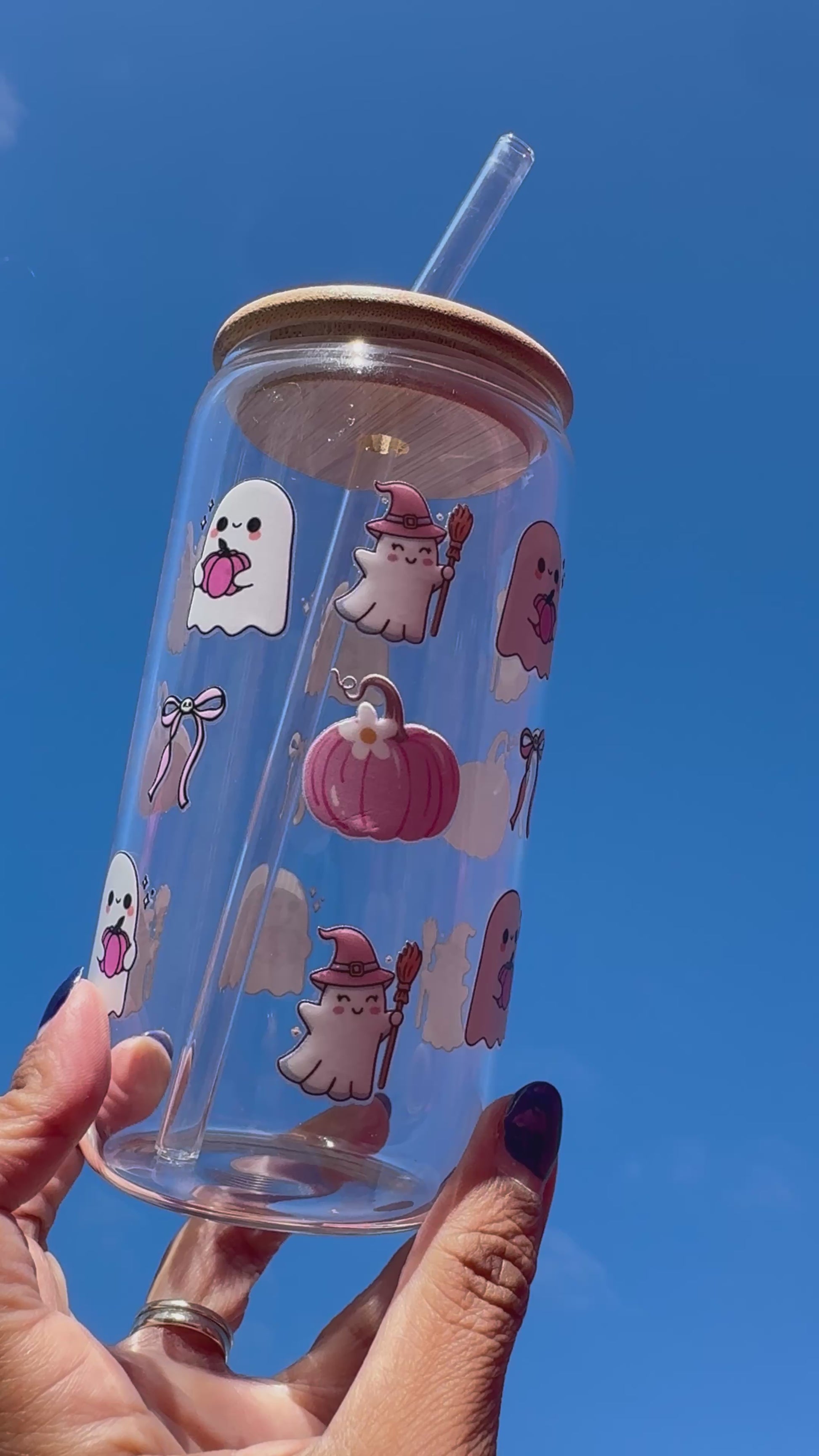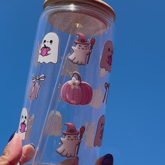 Boo Ghost Glass Can Cup β Pink Pumpkin, Witch & Spooky Cute Halloween Design