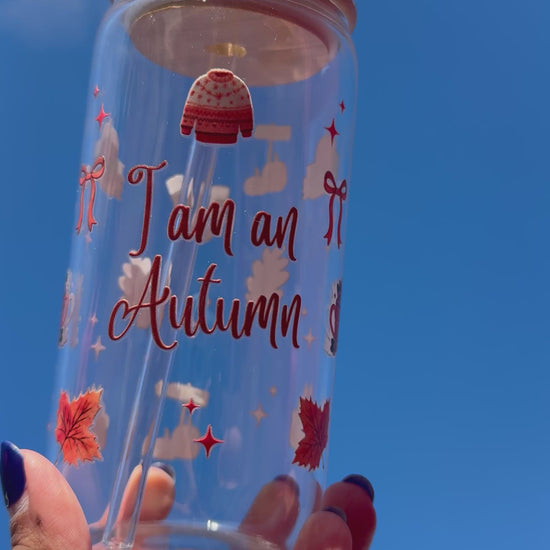 Sip your favourite autumn drink in style with the I Am An Autumn Glass Can Cup! πβ