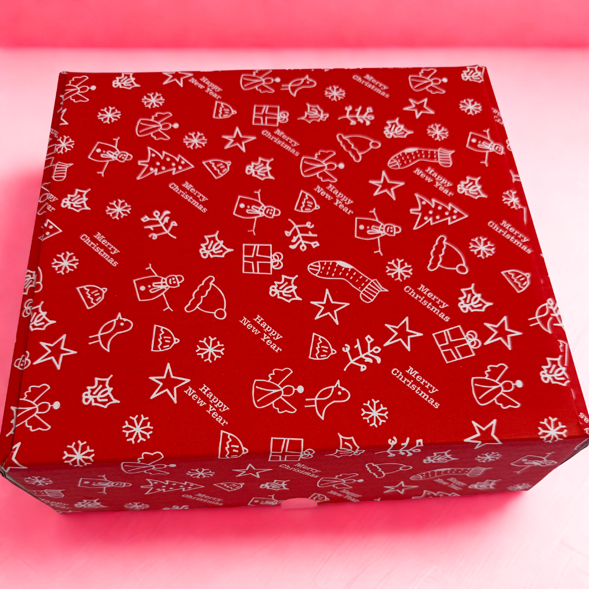 Each bundle comes beautifully packaged in a red festive gift box covered in Christmas icons and messages — ready to gift straight away, no wrapping required!